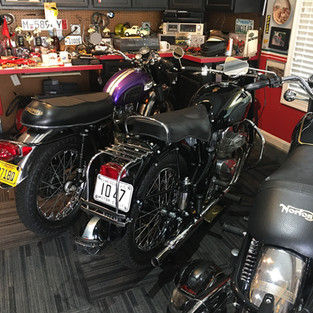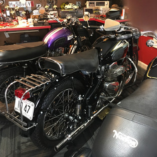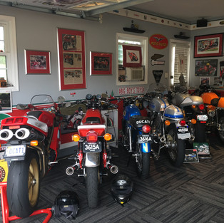 The second Sunday of every month is my regular jaunt to Bikes & Breakfast in Clifton, Virginia. On a good day, the event can draw upward of 300+ motorcyclists. Even on a cold wet miserable day in winter, a few die-hards will be there enjoying the social aspects of motorcycling and admiring the diverse selection of bikes that invariably turn up. One person will be there irrespective of the weather: John Esposito. John and his friend Dale are the founding fathers of Bikes and Breakfast. http://www.bikesandbreakfast.com Dale started the first event in New York in the Spring of 2013, and John followed the following year with the Clifton venue. Originally from Brooklyn, New York, John came to Virginia 33 years ago and has successfully increased his motorcycle inventory by one (and a bit) each year since arriving in Clifton. He now owns 35 motorcycles from 10 different manufacturers. John is quick to point out that his is not a collection. Every bike is ridable, and each has a special place in his motorcycle heart. All the bikes represent a time, an event, a person, or a desire, so the bikes are more a motorcycle memory of his entire life. When asked the inevitable question of favorite, his reply is always 'there is no favorite'. Each bike is different and carries its own story and of course the tale of how he acquired it. His attention to detail to refurbish the bikes reflects his trademark as a jeweler and his critical eye for quality is obvious. Every bike is meticulously maintained, and each has their own parking space where they are hooked up to the electrical umbilical cord of a battery tenderer. His 1969 BMW R69S sits aloft a pneumatic stand in his auxiliary garage and is the bike that has been with John since he arrived in Virginia. The Ariel Square Four that he acquired in 2012 sits in his attached garage and can boast to be the bike John has invested most heavily in terms of blood, sweat, and tears. He has gotten to know every nut, bolt, and washer of this incredibly impressive machine (listen to the sound of the square four on the video). At 18 years old John bought his first new bike, a Laverda 750SFC which John recalls was parked next to a brand new John Player Norton Commando in the showroom that carried the same price tag. However, the pull towards the Italian classic was much greater than the drift towards the Norton. John no longer has the 750SFC and craved it's bigger brother the three-cylinder 1000cc Laverda 3C. John has made that dream come true and a beautiful example of the 3C in classic Laverda Orange sits alongside five of its Ducati cousins in his attached carpeted garage. Although John has no favorite, you cannot help but think that his Italian name has somehow made a connection to these Italian bikes. Most of the 35 bikes are Italian and of those, most are Ducati's. With two garages full of bikes (and a couple of vintage cars - a Porsche and a 1964 Corvette) the only place left for the overspill is the house. In fact, 20% of the bikes have made it indoors, but these are quite special machines. A 1985 Mike Halewood Ducati Mille sits astride a special edition Ducati MH900 Evoluzione. The MH900 was made to celebrate Mike Halewood's 1978 racing bike at the turn of the millennium. Just 2000 were made, John's bike is number 0106. Next up is the 1990 Ducati 851 Superbike which has won John prizes for the best sounding (loudest) bike. A 1959 Ducati 200 elite racing bike completes the house collection of Ducati's. In 1984 BMW made a Last Edition of the R100RS which was the first fully-faired bike available to the public when it went on sale back in 1976. John's immaculate example sits alongside the Ducati 200 elite and the 851 in the lounge. An incredibly special 1997 Honda Dream 50 racing bike sits in the conservatory. None of the house bikes look out of place. Some people place their pieces of art work on the wall, and sculptures on elevated shelves to admire. John views motorcycles exactly the same way except that they are far too heavy to hang on the wall. The final house bike sits in the basement and is a 1966 Honda Super 90 (cover picture). It was one of these bikes that John learn to shift gear on. This was quite a fitting end to a remarkable brisk Sunday Fall morning. Ending with the bike that started a lifetime of adventure on two wheels. Owning a bike simply because it reminded him of the time he learned to change gear epitomizes why he has gathered such a diverse selection of bikes under three roofs! When he is not caring for the bikes, John loves slot car racing and enjoys riding his 1953 Raleigh Bicycle every day to get the mail. Thanks, John, for having an incredible selection of motorcycle art and telling your life story through some remarkable pieces of engineering.
